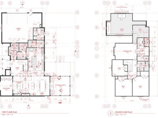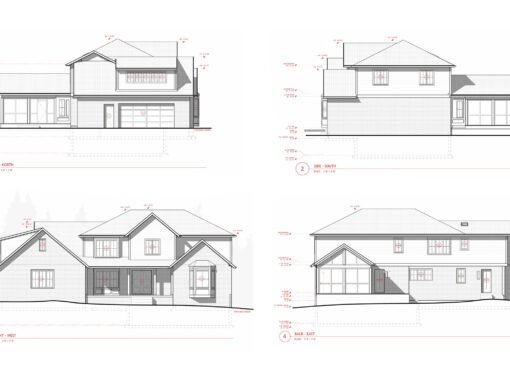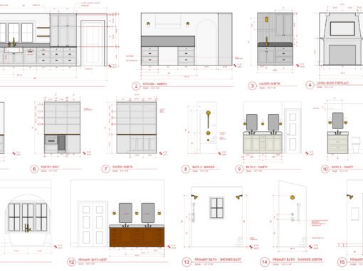 Simultaneously, we collaborated with vendors to source materials and prepared a mood board that captured the client’s vision for the interior design. Once the modeling phase was complete, we produced the permit set. This comprehensive set included floor plans, roof plans, reflected ceiling plans (RCPs), interior and exterior elevations, sections, wall sections, and detailed construction drawings.